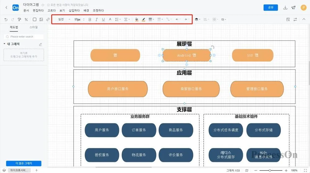 ProcessOn을 예로 들면 , 마이크로서비스 아키텍처 다이어그램을 그릴 때 개발자는 다음 단계를 따를 수 있습니다.