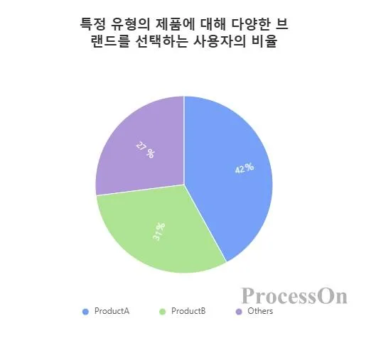 시장 조사: 다양한 제품을 선택하는 사용자의 비율을 제시합니다(예: 브랜드 A 42%, 브랜드 B 31%, 기타 27%).