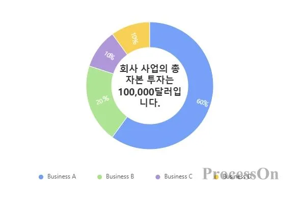 전략회의 : 핵심사업과 주변사업에 대한 자본투자 비중을 보여주세요 . ( 사업 A는 60%, 사업 B는 20%, 사업 C는 10%, 사업 D는 10%를 차지합니다 .)