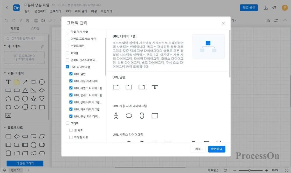 3. 왼쪽의 그래픽 라이브러리에서 "추가 그래픽"을 클릭하고, 만들고 싶은 C4 차트 유형을 선택한 후 "확인"을 클릭합니다.