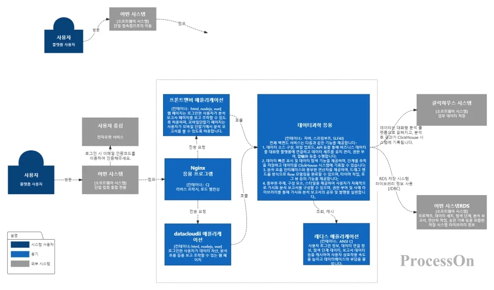 다음은 소프트웨어 시스템의 데이터 생산 및 릴리스 모듈의 C4 모델입니다.