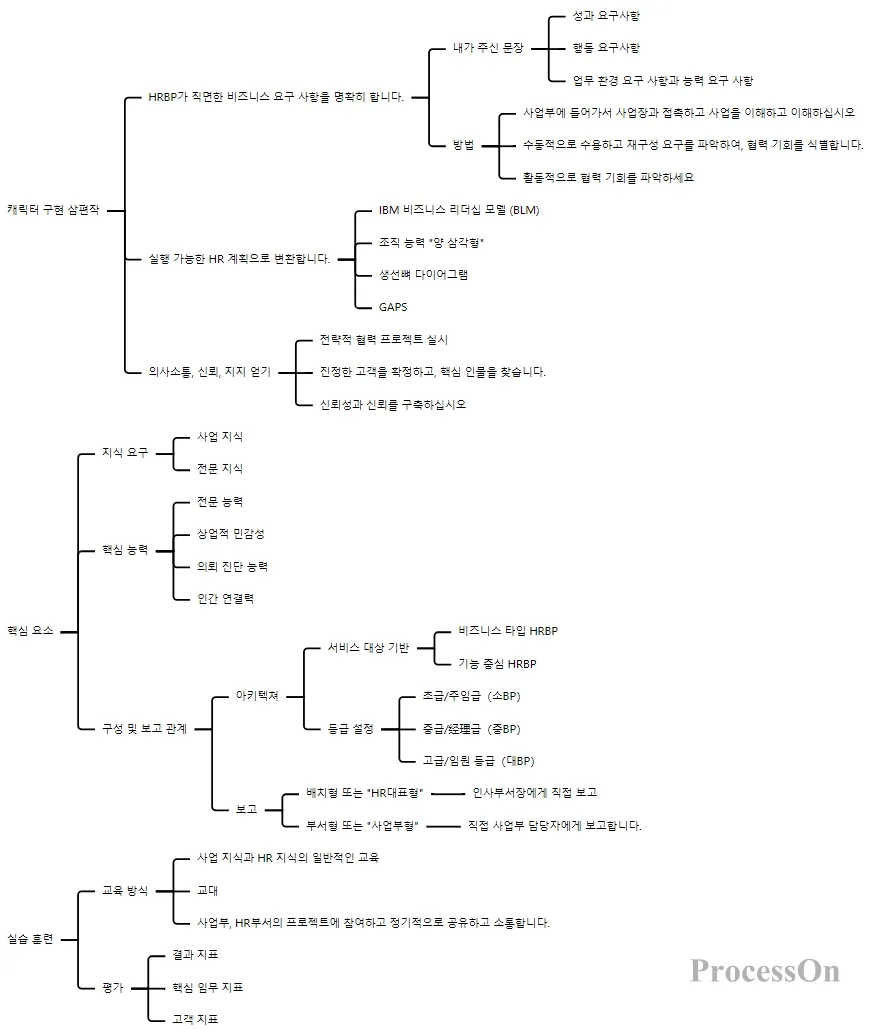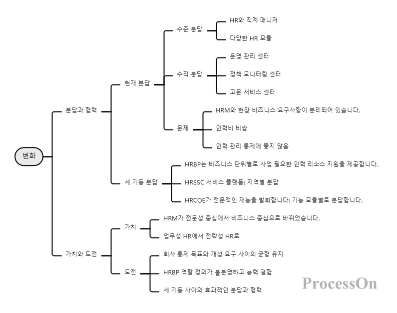 마지막으로 ProcessOn의 무료 온라인 마인드맵을 활용하여 인적 자원의 세 가지 기둥에서 각 지점의 관계와 계층 구조를 직관적으로 표시합니다. 예를 들어, 세 가지 기둥(HRBP, HRSSC, COE)을 설명할 때 HRBP의 역할 포지셔닝, 주요 활동, 교육 관행 등 HRSSC의 기능 포지셔닝, 세 가지 기반 및 콘텐츠와 같은 각 기둥 아래의 세부 내용을 확장할 수 있습니다. 설계 등 COE의 역할 기능 및 구현, 역량 요구 사항 및 개선 계획 등