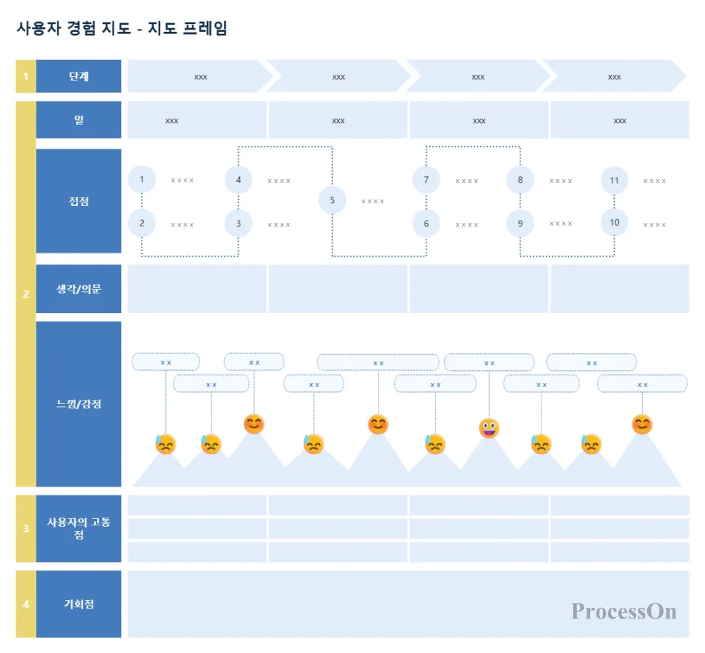 사용자의 관점에서 사용자가 제품을 사용하거나 서비스를 제공받는 과정을 스토리텔링을 통해 처음부터 목표를 달성하기까지의 전 과정을 시각적인 그래픽으로 표현, 표현합니다.
