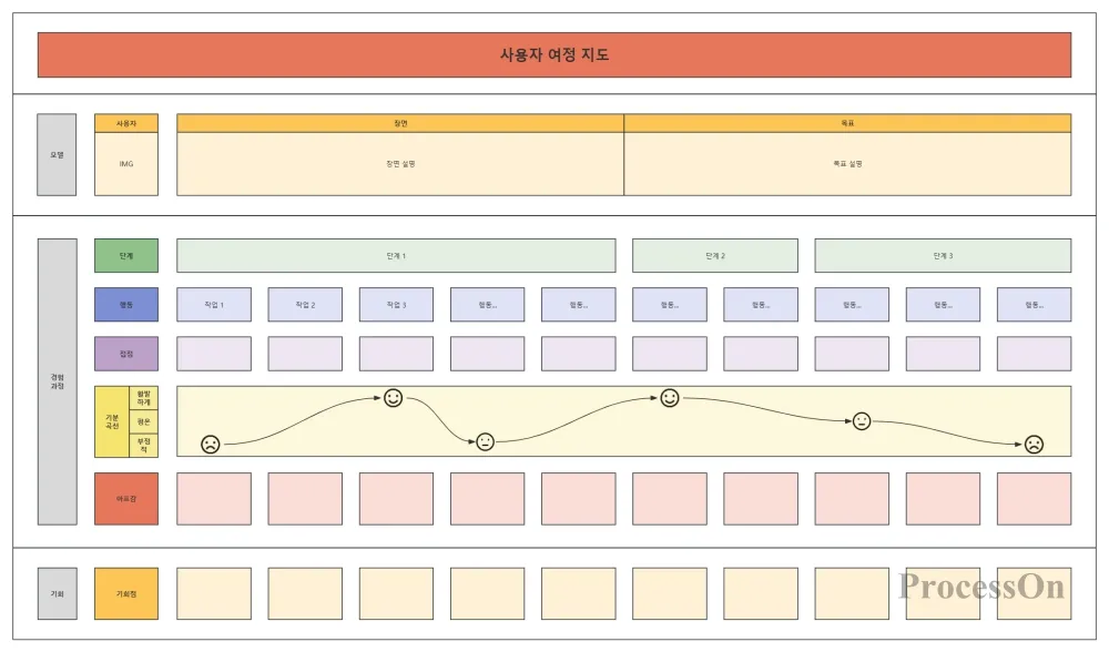 감정: 일반적으로 사용자 경험 중 감정의 기복을 나타내는 데 단일 선이 사용됩니다