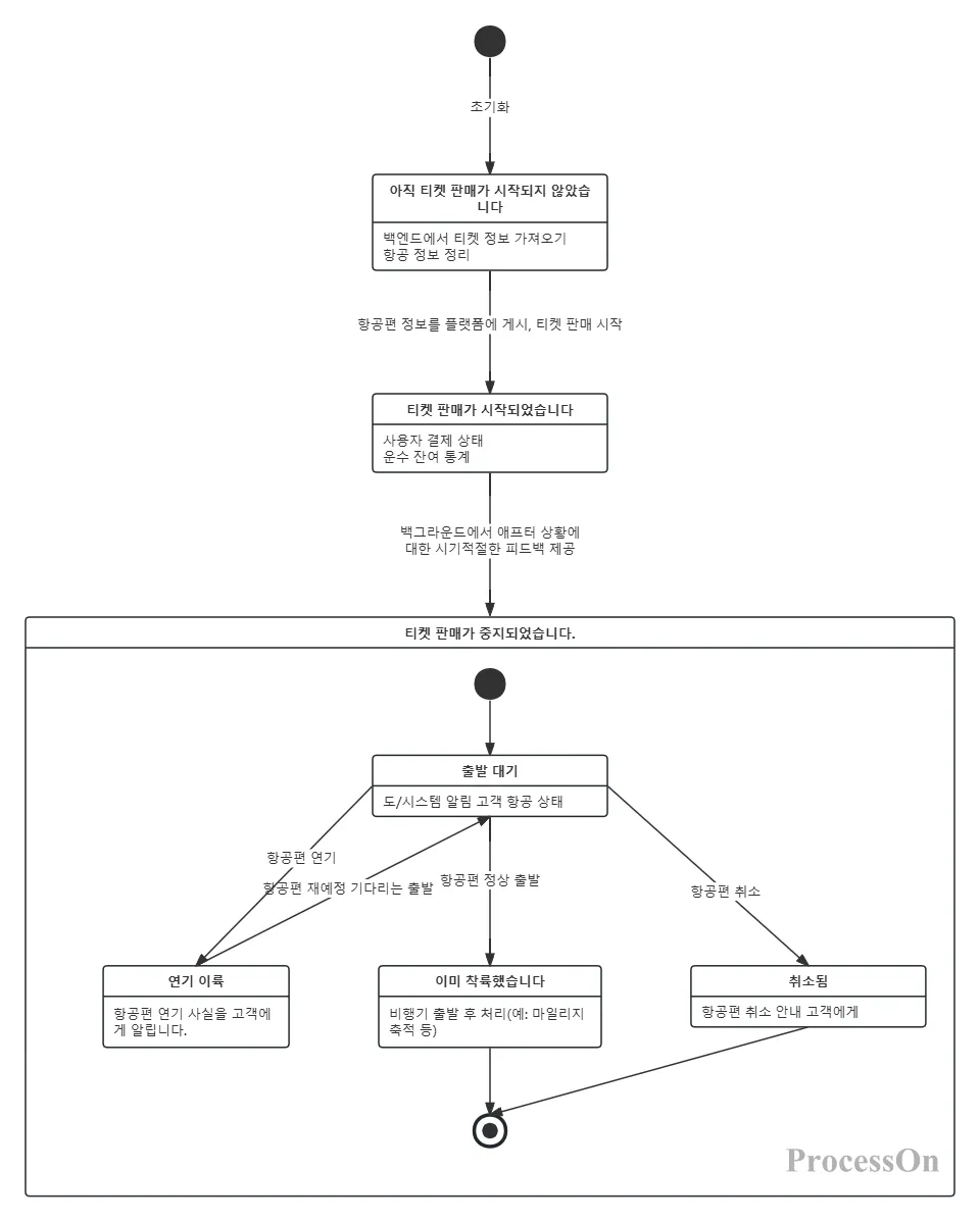 전환 정의: 상태 간 전환에 대한 조건 및 트리거 이벤트를 결정합니다.