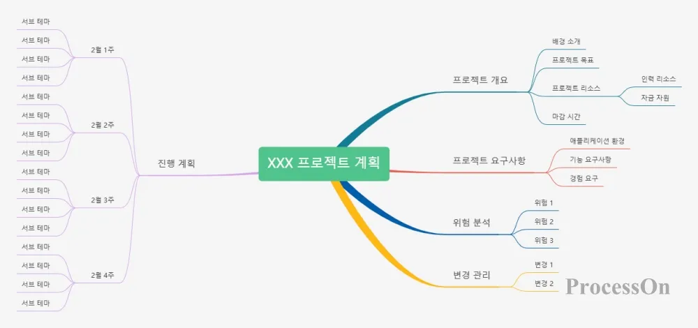 마인드맵은 계획 수립, 메모 읽기, 브레인스토밍, 문제 분석 등에 사용될 수 있습니다. 확산적 사고의 관점에서 보면 템플릿을 마인드맵에 적용하는 것은 적합하지 않을 수 있습니다. 왜냐하면 템플릿 자체가 확산과 사고의 과정이고, 템플릿을 사용하는 것은 자신의 사고를 제약하게 되기 때문입니다. 그러나 일부 특정 일반적인 시나리오의 경우 ProcessOn 에서 직접 제공하는 템플릿을 사용하는 것이 좋습니다 .