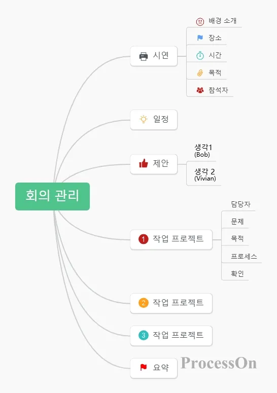 마지막으로 프로젝트 진행 상황, 문제 해결 방법, 결정해야 할 문제 등을 포함하여 회의를 요약합니다. 이를 요약하고 마인드 맵에 기록한 후 직원과 공유할 수 있습니다.