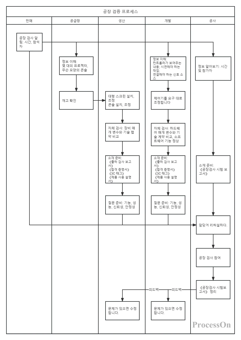프로세스 시각화: 프로젝트 관리에서 스윔 레인 다이어그램은 시작부터 완료까지 프로젝트의 다양한 단계뿐만 아니라 각 단계에서 다양한 팀의 책임과 작업을 표시하는 데 사용됩니다. 스윔 레인 다이어그램을 통해 프로젝트 관리자는 프로젝트의 전반적인 프로세스와 진행 상황을 명확하게 확인할 수 있어 프로젝트 관리 및 모니터링이 용이해집니다.