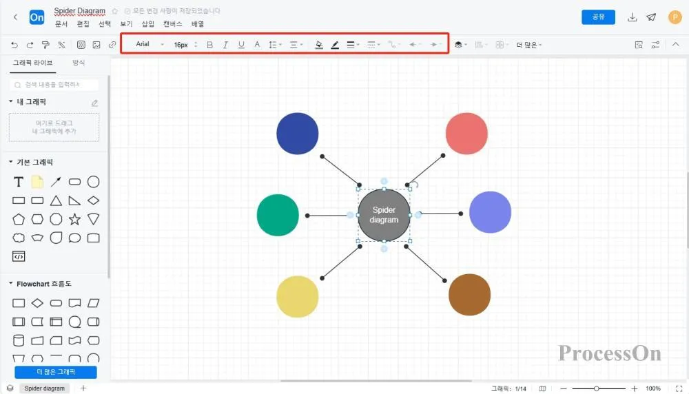 플로우차트 메이커가 스파이더 다이어그램을 그립니다
