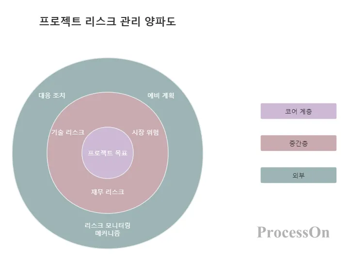 중간 계층: 기술 위험, 시장 위험, 재무 위험 등 프로젝트 진행 중에 직면할 수 있는 다양한 위험을 식별하고 이러한 위험이 프로젝트 목표에 미치는 영향을 평가합니다.