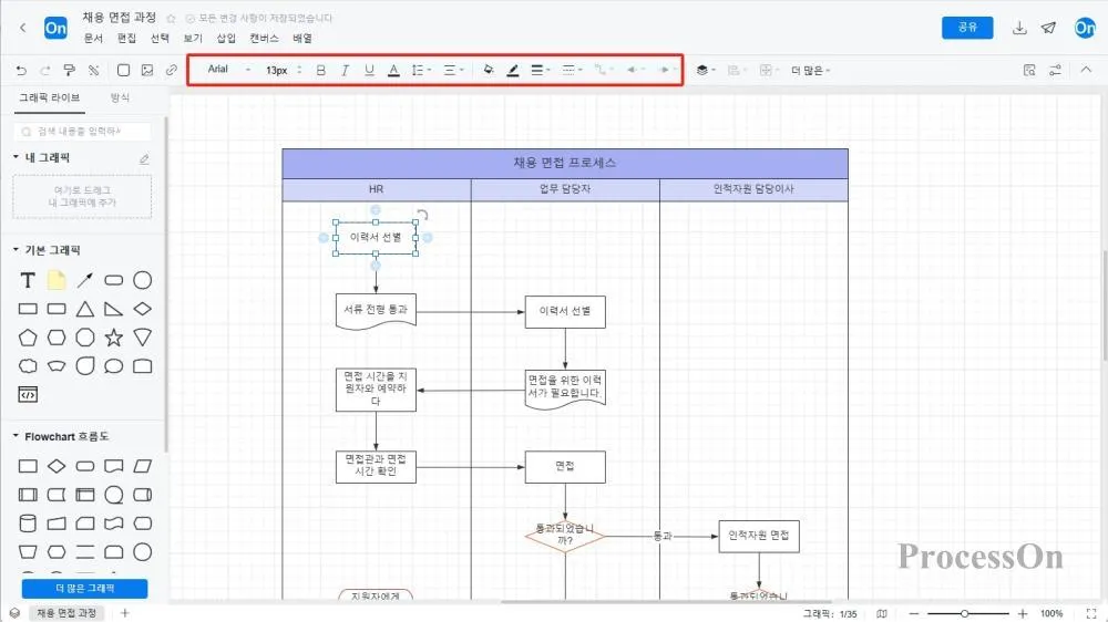 새로운 인력 교육: HR 팀의 새로운 구성원에게 흐름도는 작업 프로세스에 빠르게 익숙해질 수 있는 효과적인 방법입니다.