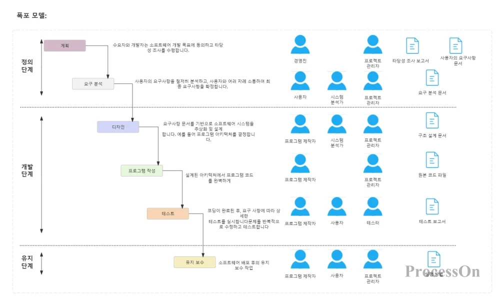 SDLC-프로젝트 관리 프로세스 폭포수 모델 다이어그램