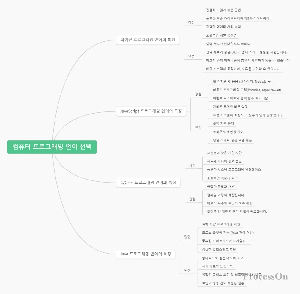 위 내용은 프로그래밍 학습경로 관련 내용입니다 . 위의 마인드맵 내용은 모두 ProcessOn을 이용하여 그려졌습니다.