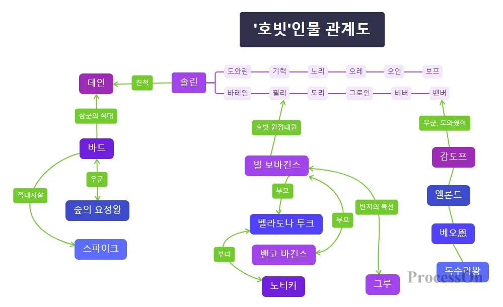 마인드 맵의 방식으로 다른 "반지의 제왕"을 경험하도록 안내합니다.